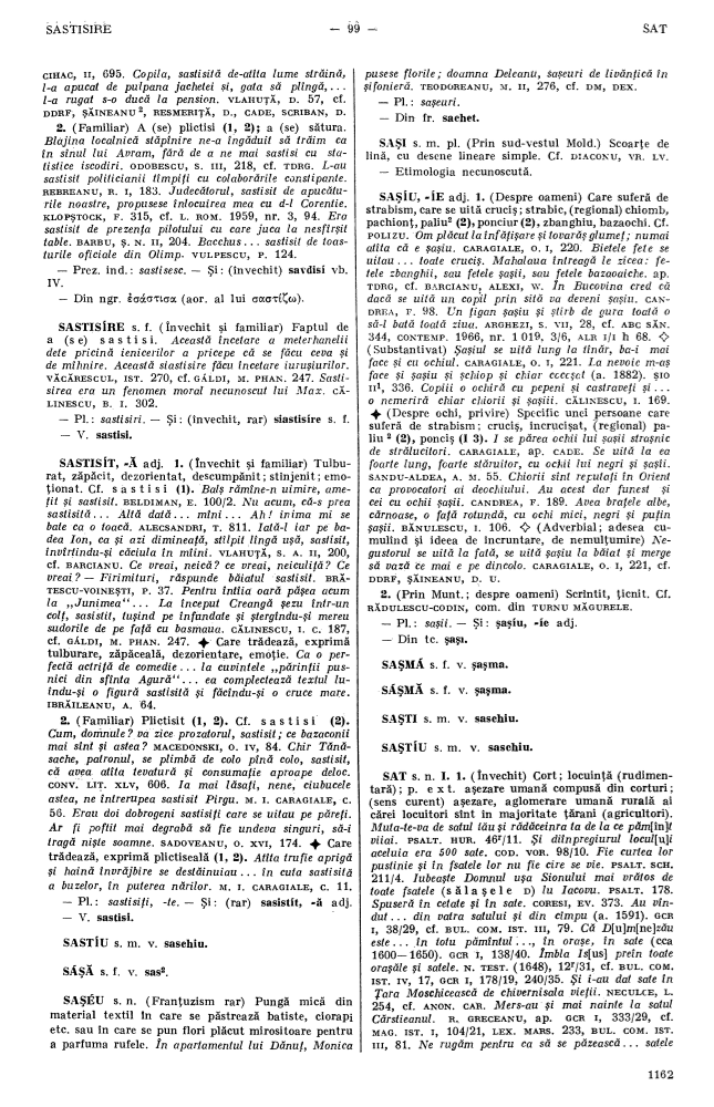 - Iorgu Iordan, Alexandru Graur, Ion Coteanu, editors (1986), Dicționarul Limbii Române[1], volume 10, part 1, Bucharest: Academy of the Socialist Republic of Romania, page 99